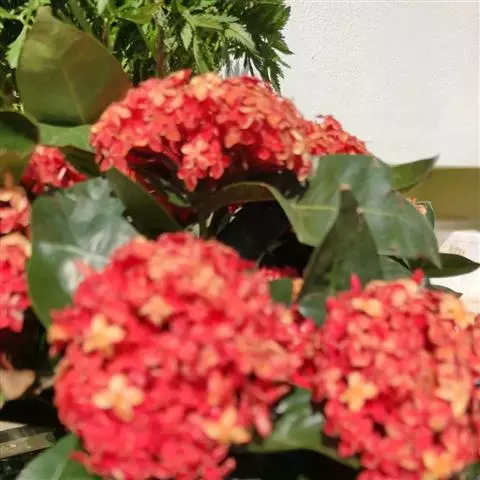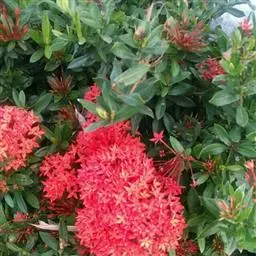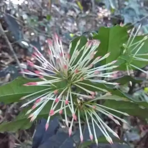 海南龙船花(Ixora hainanensis Merr.),灌木;仅冠筒喉部被疏毛,全株无毛。
