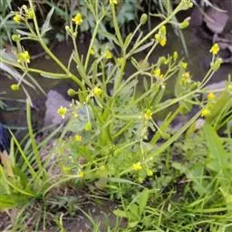 石龙芮(学名:Ranunculus sceleratus L.):毛茛科,石龙芮一年生草本植物。须根簇生。茎直立,高可达50厘米,基生叶多数;叶片肾状圆形,茎生叶多数,聚伞花序有多数花;花小,萼片椭圆形,花瓣倒卵形,花药卵形,聚合果长圆形,瘦果近百枚极多数,5月至8月花果期。
