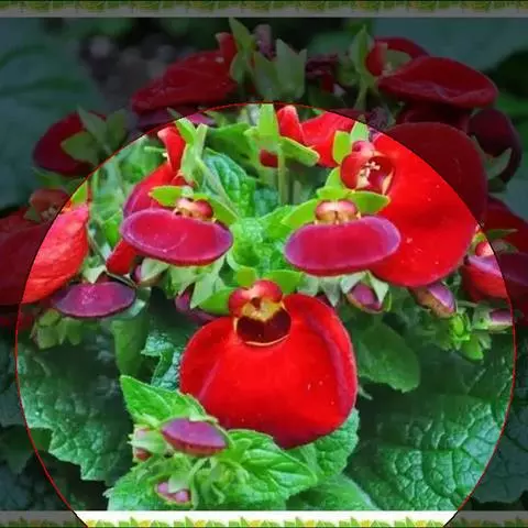 荷包花 蒲包花正值春节应市,奇特的花形,惹人喜爱。也是很好的礼仪花卉,送上一盆鲜红的蒲包花,使节日的气氛更为浓厚。若摆放窗台、阳台或客室,红花翠叶,顿时满室生辉,热闹非凡。在商厦橱窗、宾馆茶室、机场贵宾室点缀数盆蒲包花,绚丽夺目,蔚为奇趣。