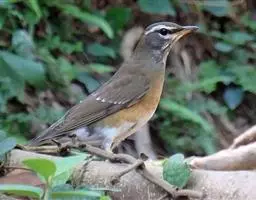 白眉歌鸫,是雀形目鸫科鸫属鸟类。体型略小并具有褐色斑点的歌鸫,上体橄榄褐色,眉纹白色,脸部斑驳,…
