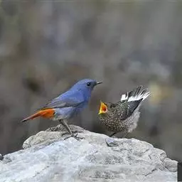 宝兴歌鸫(图一) 宝兴歌鸫的繁殖期为5-7月,5月中旬迁往中国北京地区,5月下旬即进入繁殖期。营巢于海拔1500m以上的亚高山针阔叶混交林,曾于7月8日在海拔1800m处的混交林林缘地带的白桦树上找得一巢。巢置于距主干不远的侧枝枝杈上,距地高约2.5m。巢底和巢外围用直径1.5-3.5mm粗的枯枝作支架,基底部用枯草茎、枯草根、苔藓和粘土混合构成,牢牢地固定在树杈上,甚为坚固,巢内壁和巢底再用细草茎和纤维编织和铺垫。巢外径16-19cm,内径8-9cm,高10cm,深5.5cm。窝卵数4枚。卵淡蓝灰绿色、被有玫瑰红褐色和灰蓝褐色点斑、块斑或渍斑,尤以钝端斑点较密和较大,尖端斑点或块斑小而稀疏。卵的大小为19.5(19.4-19.6)mm×28.9(28.4-29.4)mm,重5.5(5.4-5.6)g。