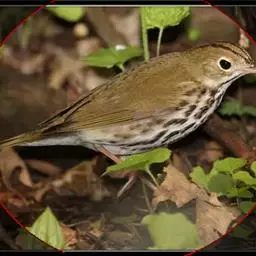 宝兴歌鸫为中型鸟类,体长20-24cm。上体橄榄褐色,眉纹棕白色,耳羽淡皮黄色具黑色端斑,在耳区形成显著的黑色块斑。下体白色,密布圆形黑色斑点。