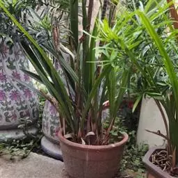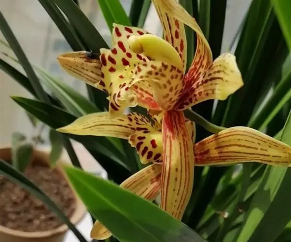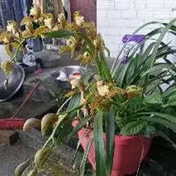 花盆宜选择直径15-20厘米的高筒花盆,每盆2-4苗。虎头兰喜较高的空气湿度,春夏秋三季,在给予根部充足水分的同时,应经常叶而喷水。但在早春开花后,虎头兰的短暂休眠期内,必须少浇水,待新芽生长出较大的新根时才能多浇水。虎头兰植株大,生长繁茂,需要肥料比一般明显多,故生长季节应加强施肥。一般可将发酵过的饼肥等与1/3粘土混合,再加水做成直径2厘米左右的球,晒干备用。浇水时要达到一浇即泻,盆内无积水或渗水过慢的现象。家庭用盆不宜过大,用直径25厘米左右的瓦盆较好,每盆3-4株成龄兰,2年后便可增至8-9株,分盆时可一分为二,每盆仍留3-4株。把分盆掰下的老假磷茎进行繁殖若要培养株型较大的兰花,可选用直径30厘米以上的瓦盆,排水层一定要设计好,至少占盆深的1/3,这是栽培虎头兰成功的关键。于春季放在盆面,离开新芽有一定的距离,肥料可缓慢放出养分供兰花生长。每年可施用两次,每盆数粒,也可施用发酵好的液体农家肥,每1-2周一次,还可用喷雾器向叶片及盆面喷洒氮磷钾复合肥,浓度应在3-5%,每周1-2次。秋末停肥。
