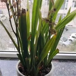 终年都有,高温多雨季节更为猖撅,而以建兰感染尤多。病斑先从叶尖向根茎处延伸,初为褐色,然后逐渐扩大增多,出现许多干黑点,严重时导致整株死亡。防治方法:除积极改菩环境条件外,在发病期内,可先用50%甲基托布津可湿性粉剂800-1500倍液喷治,每7-10天一次;然后再辅以1%等量式波尔多液,每半月一次,连续喷3-5次。
