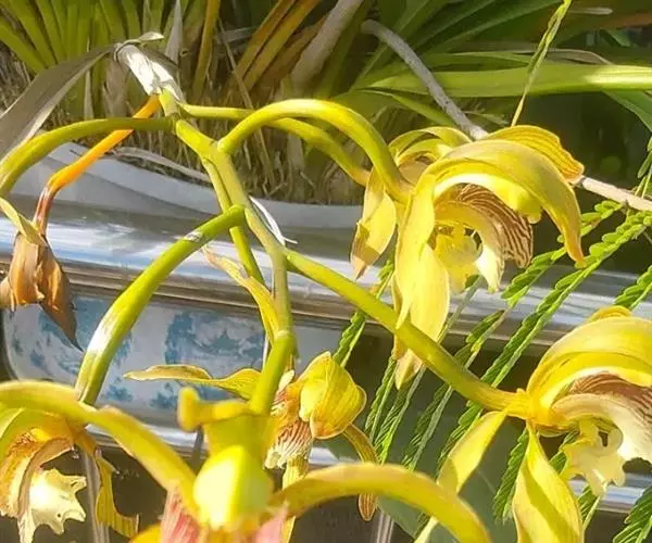 日常养护虎头兰需要注意通风,浇水时注意宁干勿湿,每半月采用浸底法施一次1%的复合肥溶液,夏季适时遮阴,选用50%的遮阴网,暂停施肥,加强通风,温度高时要加强喷雾。秋季天凉后,加强肥水管理,每十天施一次2%的磷酸二氢钾溶液,也可配合叶面施肥。一般在11月中下旬即可看到新芽冒出,此时的芽有花芽和叶芽两种,花芽宽、粗,叶芽尖、细,可摘除叶芽,控制营养生长,出现花芽后,温度可保持在10℃至26℃之间,继续追施磷酸二氢钾溶液,当花箭拔出后,花苞即将开放时,绑支柱,就可以准备观赏了。