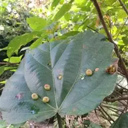 灌木或小乔木,嫩枝中空,小枝,叶和榕果均被金黄色开展的长硬毛。叶互生,纸 质,多型,长椭圆状披针形或广卵形,长10-25厘米,边缘具细锯齿,有时全缘或3- 5深裂,先端急尖或渐尖,基部圆形,浅心形或宽楔形,表面疏生贴伏粗硬毛,背面密或 疏生开展的白色或黄褐色绵毛和糙毛,基生脉3-5条,侧脉每边4-7条;叶柄长2-8 厘米;托叶卵状披针形,长10-30毫米,膜质,红色,被柔毛。
