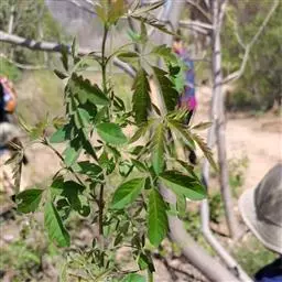 扦插繁殖:于春季树液萌动前或夏季,选择2年生以上、茎粗0.5-0.7厘米、生长健壮的枝条,剪成40-50厘米长的插条。为了加速生根,将下端剪口用0.05%ABT生根粉溶液浸蘸10秒,取出晾干药液后扦插。插时在畦面上按行距30厘米开横沟,沿沟每隔7-10厘米将插条与地面成45°角斜插入土内,地上部留10-15厘米。插后随即填土踩实,浇水,再覆细土与畦面齐平。保持苗床湿润,约1个月左右插条生根发芽。扦插成苗后,加强苗床中耕除草和追肥、灌水等管理措施。培育1年,即可定植。