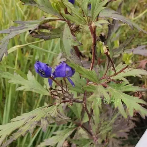 北乌头乌头属多年生草本植物,块根圆锥形或胡萝卜形,等距离生叶,通常分枝。叶片纸质或近革质,顶生总状花序,通常与其下的腋生花序形成圆锥花序;萼片紫蓝色,上萼片盔形或高盔形,花丝全缘或有2小齿;种子扁椭圆球形,7~9月开花。