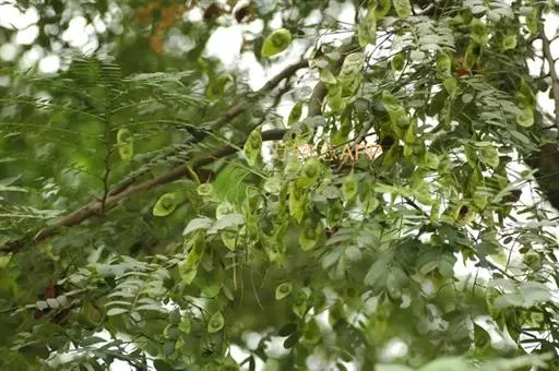 荚果薄革质,舌状长圆形,长5-7.5厘米,宽1.5厘米,有种子1-2粒;种子肾形,扁平,长约11毫米,宽约5毫米。花期2-4月。
