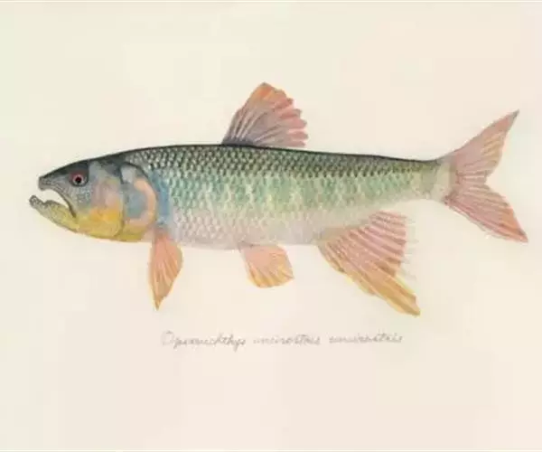 马口鱼上下颌相嵌 马口鱼(Opsariichthys bidens)俗名花杈鱼,桃花鱼,山鳡,坑爬,宽口,大口扒,扯口婆,红车公。产于南盘江、元江、沧江等水域。是一种杂食性偏肉食淡水鱼。