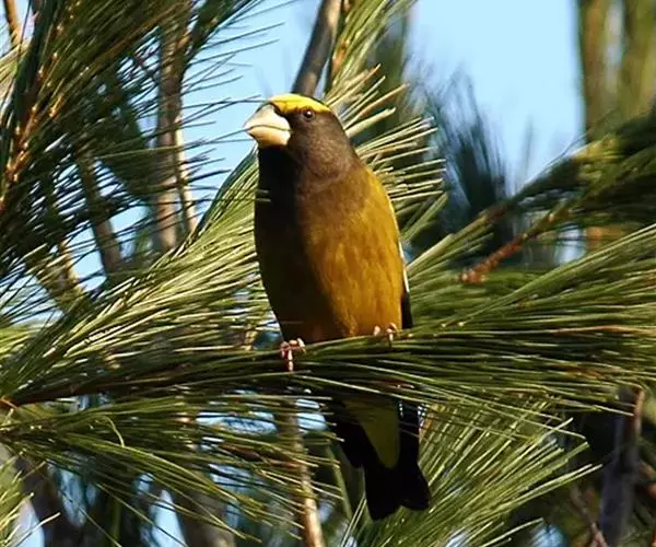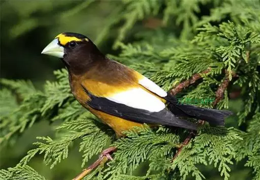 该雀英文名Cocothraustes migratorlus,又叫黑尾、包头蜡嘴、包头、皂儿、小桑嘴等别名。