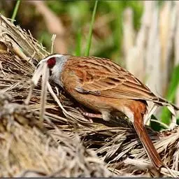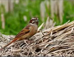 山麻雀:小型鸟类,体长13-15厘米。雄鸟上体栗红色,背中央具黑色纵纹,头棕色或淡灰白色,颏、喉黑色,…