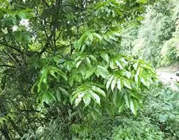 中乔木,树形优美。老茎有垂直的深裂痕,树皮灰白,新枝带点暗红色,分枝多。奇数羽状复叶,互生,具叶柄,叶柄具狭翼,小叶 3~7 片,几无柄,长椭圆形或卵状长椭圆形,叶基近圆形,叶尖钝,具 1 微尖,叶缘全缘或不明显疏锯齿状缘,上表面暗绿色。呈密集枝圆锥花序,生於枝顶或枝梢之叶腋,花小,花萼短,5 裂,裂片三角形,花瓣 5片,长椭圆形,雄蕊 10 枚,长短不等,著生花盤外侧基部,子房球形,1 室,花柱 3 裂,花期 4~5 月。核果,球形。