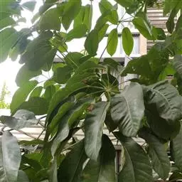 昆士兰伞木,吕松鹅掌柴 ,称昆石兰遮树,澳洲鸭脚木、方式叶鹅掌柴、伞树、大叶伞。叶片阔大,柔软下…