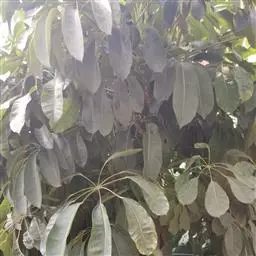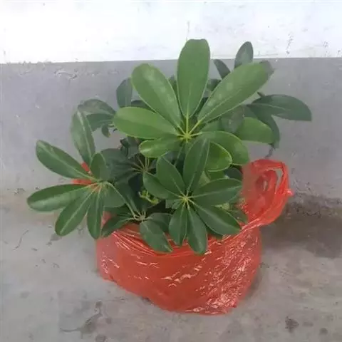 昆士兰伞木,吕松鹅掌柴 ,称昆石兰遮树,澳洲鸭脚木、方式叶鹅掌柴、伞树、大叶伞。叶片阔大,柔软下垂,形似伞状,株形优雅轻盈,易于管理,适于客厅的墙隅与沙发旁边置放,是室内理想的观叶植物。但目前多由南方引进,成本较高。常绿乔木,高可达30~40米。茎杆直立,少分枝,嫩枝绿色,后呈褐色,平滑。叶为掌状复叶,小叶数随树木的年龄而异,幼年时3~5片,长大时5~7片,至乔木状时可多达16片。小叶片椭圆形,先端钝,有短突尖,叶缘波状,革质,长20~30厘米,宽10厘米,浓绿色叶子。有光泽,叶背淡绿色。叶柄红褐色,长5~10厘米。浆果,圆球形,熟时紫红色。