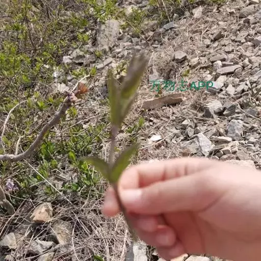 蚂蚱腿子 落叶小灌木,高60-80厘米。枝多而细直,呈帚状,具纵纹,被短柔毛。叶片纸质,生于短枝上的椭圆形或近长圆形,生于长枝上的阔披针形或卵状披针形,长2-6厘米,宽1-2厘米,顶端短尖至渐尖,基部圆或长楔尖,全缘,幼时两面被较密的长柔毛,老时脱毛;中脉两面均凸起,侧脉极纤弱,通常仅于基部的1对较明显,网脉密而显著,两面均凸起;叶柄长3-5毫米,被柔毛,短枝上的叶无明显的叶柄。