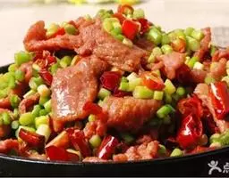 椒麻牛肉,是一道家常菜,制作原料主要有红辣椒、青辣椒、牛里脊。