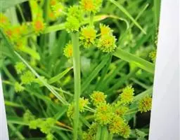 球穗藨草 多年生草本,散生,具匍匐根状茎和块茎,块茎小,呈卵形。秆高10-50厘米,三稜形,平滑,中部以上生叶。叶扁平,线形,稍坚挺,宽1-4毫米,在秆上部的叶长于秆或等长于秆,边缘和背面中肋上不粗糙或稍粗糙。