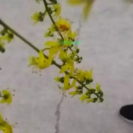 花序为5-7花两岐状的聚伞花序,生于茎及分枝顶端,多个再组成顶生圆锥花序;苞片及小苞片线形,长达4毫米。萼片长圆形或披针形,长3-4毫米,宽1-1.2毫米,先端渐尖至锐尖,边缘有黑色腺点,全面有2行腺条和腺斑,果时直立,略增大,长达4.5毫米。花瓣黄色,长圆形或长圆状椭圆形,两侧不相等,长约1.2毫米,宽0.5毫米,边缘及上部常有黑色腺点。雄蕊多数,3束,每束有雄蕊约15枚,花丝长短不一,长达8毫米,花药黄色,具黑腺点。子房卵珠形,长3毫米,花柱3,自基部极少开,长4.5毫米。蒴果长圆状卵珠形,长约5毫米,宽3毫米,具背生腺条及侧生黄褐色囊状腺体。种子黑褐色,圆柱形,长约1毫米,具纵向条棱,两侧无龙骨状突起,表面有细蜂窝纹。花期7-8月,果期9-10月。