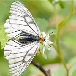 冰清绢蝶:是绢蝶科、绢蝶属的一种蝴蝶。翅展60-70毫米。翅白色,翅脉灰黑褐色。…