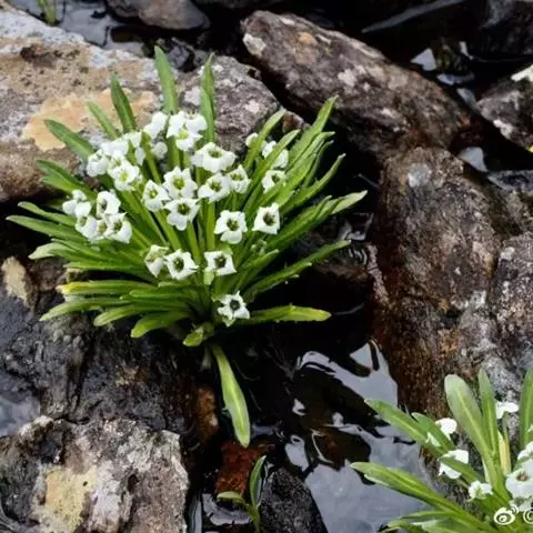 总状花序顶生;花白色,直径约2毫米;花梗细,长5-10毫米;萼片直立,卵形,长约2毫米,顶端圆钝;花瓣长圆状倒卵形,长2-4毫米,顶端圆钝或微凹。