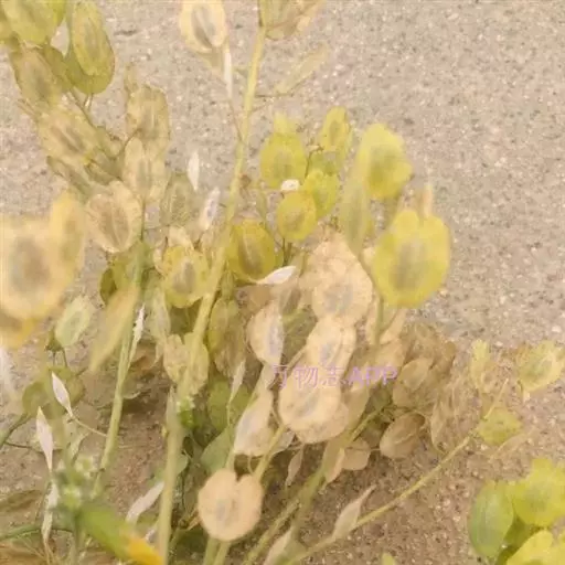 短角果倒卵形或近圆形,长13-16毫米,宽9-13毫米,扁平,顶端凹入,边缘有翅宽约3毫米。种子每室2-8个,倒卵形,长约1.5毫米,稍扁平,黄褐色,有同心环状条纹。花期3-4月,果期5-6月。
