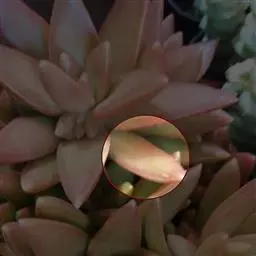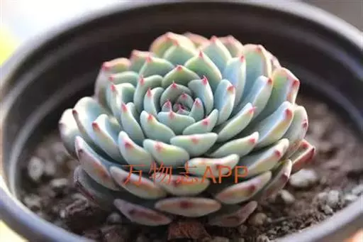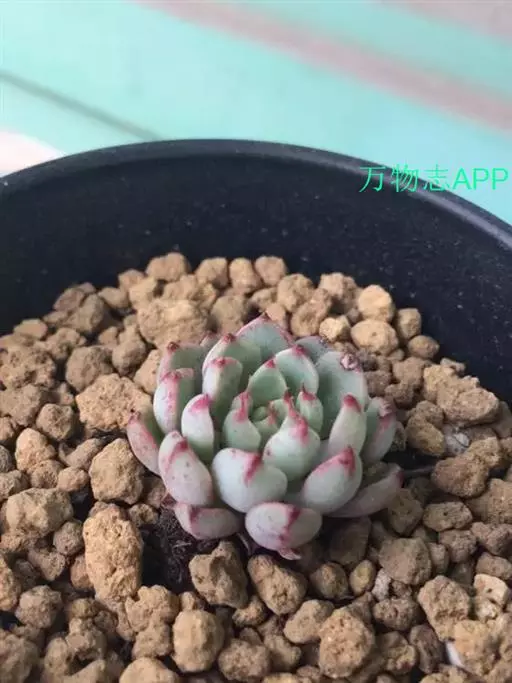 小叶片呈莲座状紧密排列,叶片呈微扁的卵形,叶尖两侧有突出的薄翼。强光下,叶缘和叶尖会呈现出漂亮的红色,是很好的观赏植物