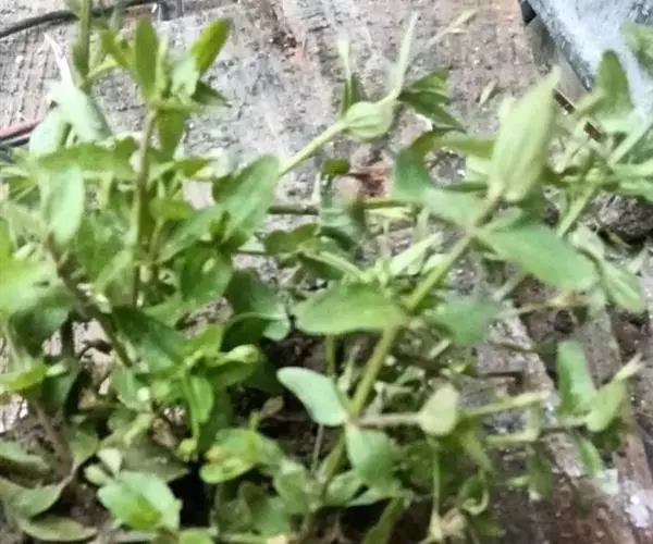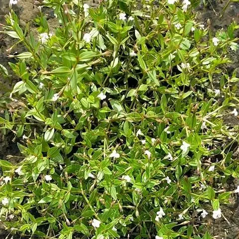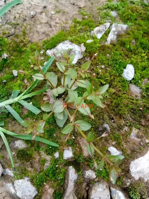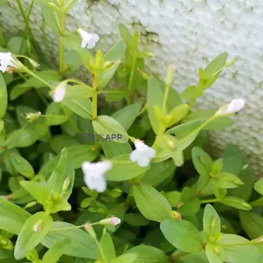 直立草本,根细密成丛;茎高5-20厘米,基部多分枝,无毛。叶无柄;叶片椭圆形至矩圆形多少带菱形,长1-2.5厘米,宽6-12毫米,顶端钝至圆头,全缘或有不明显的钝齿,两面无毛,叶脉并行,自叶基发出3-5条。花单生于叶腋,花梗纤细,长1.2-2厘米,比叶长,无毛;萼仅基部联合,齿5,条状披针形,长约4毫米,顶端钝头,外面微被短毛;花冠粉红色或紫色,长5-7毫米,管长约3.5毫米,向上渐扩大,上唇短,长约1毫米,2浅裂,下唇甚大于上唇,长约3毫米,3裂,侧裂椭圆形较小,中裂圆形,向前突出;雄蕊4,全育,前方2枚雄蕊的附属物腺体状而短小;花药基部微凹;柱头2裂。蒴果球形或卵球形,与萼近等长或略过之,室间2裂;种子多数,有格纹。花期7-10月,果期9-11月。