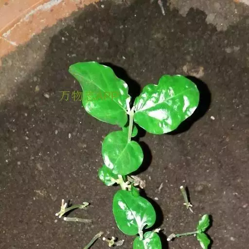 幼苗子叶卵状披针形,先端渐尖,叶基楔形,有l条明显中脉,有短柄。下胚轴及上胚轴均不发达。