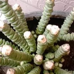 若歌诗是景天科青锁龙属的多肉植物。植株易丛生,茎淡绿色,细柱状,…
