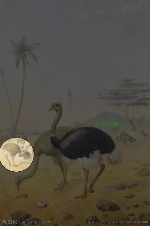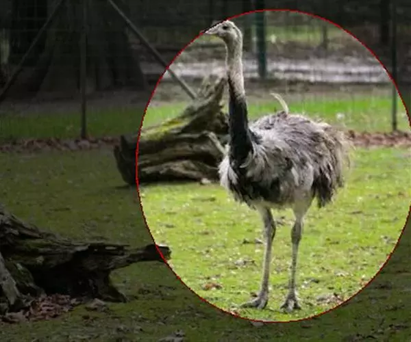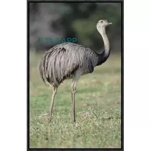 其形态很象非洲鸵鸟,它也有一只细长的腿、细长的头颈,弧形的背脊、徒有其名的翅膀,也是过着一雄多雌的群体生活,雌鸟管生蛋,雄鸟管孵卵。但是它和非洲鸵鸟有区别,一是其脚爪为3趾,而非洲鸵鸟为2趾,二是形体比非洲鸵鸟小,高度通常为1.5米,重20千克,三是羽毛没有非洲鸵鸟长。羽色多按身体部位而异,有的是油滑的棕色,有的是黑色和灰色。