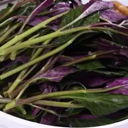 木耳菜(学名:Gynura cusimbua),别称潺菜、落葵、豆腐菜、紫角叶,菊三七属植物,多年生高大草本,高1.5-2米。花果期9-10月。木耳菜以幼苗、嫩梢或嫩叶供食,质地柔嫩软滑,营养价值高。可作汤菜、爆炒、烫食、凉拌等,其味清香,咀嚼时如吃木耳一般清脆爽口,故名木耳菜。其在南北方普遍栽培,在南方热带地区可多年生栽培,在北方多采用一年生栽培。