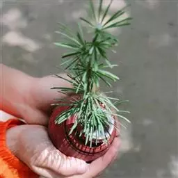 对于刚购进的球体,我们无法得知原来的种植环境和土壤结构,所以须采用彻底修根的方法。首先用毛刷把根部的土灰去除干净,接着把细根全部修去,如上面介绍的种植2年以上的修根方法,另外还要检查根部有无腐烂伤口,如果有腐烂现象,必须彻底清除,办法是在伤口上端横切一刀,动作要干净利索,伤口平整,直至伤口洁白干净、无褐红色,然后抹上杀菌药粉或生根粉。修去所有细根的原因:原有的毛根细根适应的是原来的土壤结构,我们无法仿制原土结构,所以全部修去,让其长出新的根系,新根系才能适合自己配置的土壤。