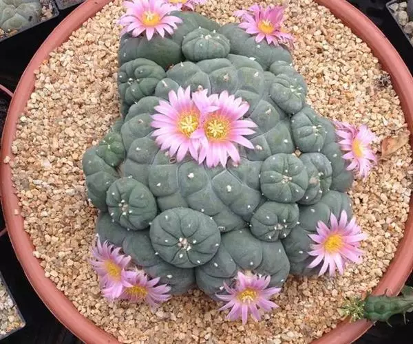 乌羽玉是仙人掌家族中的经典种类,肉质柔软、形态奇特,观赏价值很高。特别是体内含墨斯卡灵等生物碱,服用后可使人产生 快感和美妙的幻觉。因此被称为有毒素的仙人掌,知名度很高。