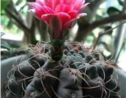 乌羽玉在中国国内的爱好者中也被俗称为“乌鱼”、“鱼”。老株丛生,萝卜状肉质根;球体扁球形或球形,表皮暗绿色或灰绿色;株高5~8厘米,棱垂直或呈螺旋状排列,顶部多绒毛,刺座有白色或黄白色绒毛;小花钟状或漏斗形,淡粉红色至紫红色;浆果粉红色,棍棒状,有10余粒黑色种子。