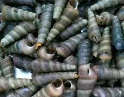 山坑螺呈圆锥形,如小手指大小,每年秋天是吃山坑螺的最佳时节。