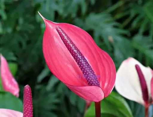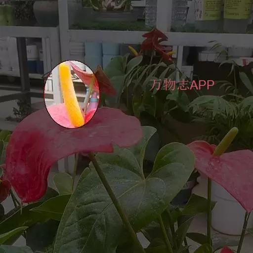 火鹤花(Anthurium scherzerianumSchott)天南星科花烛属多年生草本。有佛焰花序,叶形苞片,常见的苞片颜色有红、粉红、白等,有其花落时也可观叶。