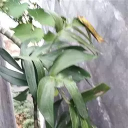 多年生附生常绿草本植物。叶革质丛生,长圆披针形,先端尖,基部圆形。根肉质,节间短;叶常绿,革质,长椭圆状心脏形。