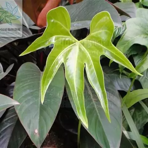 叶子和枝茎外形奇特:其叶颜色深绿,心形,厚实坚韧,花蕊长而尖,有鲜红色、白色或者绿色,周围是红色、粉色或魄的佛焰苞,全都有毒。