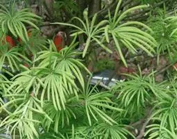 中期管理:从6月中旬起进入生长高峰期,可每隔15天施一次尿素肥,一般每次2千克/亩,到8月中旬停上施尿素肥。期间要使苗木快速生长,可在每次抽发嫩叶时,喷施适量浓度的植物生长调节剂,可使苗木旺盛生长。在施肥前2天可进行除草和间苗,第一次间苗在6月上旬,每1耐留苗密度为40株,此时间出的苗可用于补稀,但要带土球;第二次间苗在6月底,每平方米留苗30株;最后一次在7月中旬每平方米保留20株。在除草和间苗前后都要喷水浇灌,每亩保留0.6-0.7万株的产苗量。