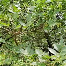 水蜡树,木樨科女贞属落叶多分枝灌木。小枝被微柔毛或柔毛;叶长椭圆形无毛或被柔毛;花序轴、花梗、花萼均被柔毛;果近球形或宽椭圆形,成熟时紫黑色;花期5~6月,果期8~10月。水蜡树原产于中国,分布于黑龙江、辽宁、浙江、山东及江苏等地,在日本和朝鲜也有分布。常生于山坡、山沟石缝、山涧林下和田边、水沟旁。水蜡树喜光稍耐荫较耐寒,耐干旱耐瘠薄,喜肥沃湿润土壤。主要繁殖方式为播种、扦插和分株繁殖。水蜡树的果实可补肝肾,强腰膝,主治阴虚内热、头晕、目花、耳鸣、须发早白;其树皮可强筋健骨,主治腰膝酸痛、两脚无力、水火烫伤。水蜡树苍劲古雅,形态多姿,叶片色泽光亮,耐修剪,易于造型,可制作枯干式、直干式、大树型、悬崖式等多种造型的盆景。其还可饲养蜡虫取蜡,据《本草纲木》记载:“水蜡树,叶微似榆,亦可放虫生蝠,甜槠树亦可放蜡”。