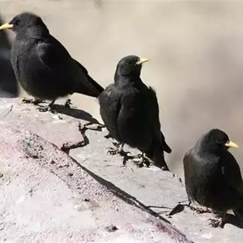 家鸦:体长38-42厘米,是一种体型较大的黑色鸦。雌雄相似,通体黑色具紫蓝色金属光泽枕至后颈、颈侧…