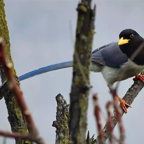 黄嘴蓝鹊是鸦科、蓝鹊属的鸟类。大型鸦类,体长45-69厘米。尾特长,呈凸状,蓝色,…