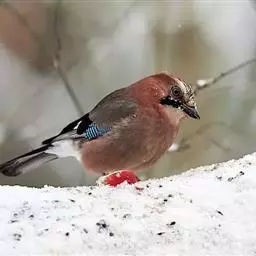 会储存各种食品,松树籽,坚果以备今后食用,而这种行为对环境是有益的,因为它们将食物藏好后,有时会忘记食用,这样它们的行为就有助于植物的传播。冬季,绒冠蓝鸦会将食物,尤其是面包和葵花籽从饲喂站定期运走,然后藏在树下和灌木丛中,以备以后食用。定期的花生、混合谷物特别是葵花籽供应能将它们吸引到饲喂架上。喜欢用爪抓住坚果,然后将壳啄开,吃里面的果仁。