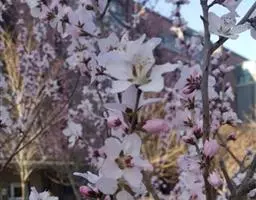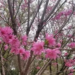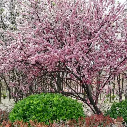 花多,花艳,花期早 经过正常修剪的美人梅,最多一株可开花450朵,花开浅紫花色浓而不艳,冷而不淡。花期正值少花的早春。若行盆栽,还可人工控制花期到“五一”节开放。