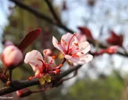 美人梅属梅花类,由梅花专家陈俊愉教授从美国引进的彩叶观花树种,美人梅作为梅中稀有品种,不仅在于其花色美观、花形和花期,而且还可观赏枝条和叶片,一年四季枝条红色、亮红的叶色和美丽的枝条给少花的季节增添了一道亮丽的风景。成长叶和枝条终年鲜紫红色,能抗-30度的低温,繁殖可用桃、杏做砧木嫁接成活率在95%以上。