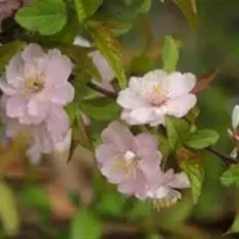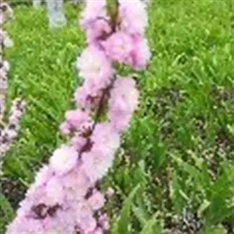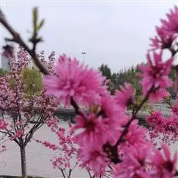 美人梅(学名:Prunus × blireana cv. Meiren):落叶小乔木或灌木,法国引进。由重瓣粉型梅花与红叶李杂交而成。落叶小乔木。叶片卵圆形,长5~9厘米,叶柄长1-1.5厘米,叶缘有细锯齿,叶被生有短柔毛,花色浅紫,重瓣花,先叶开放,萼筒宽钟状,萼片5枚,近圆形至扁圆,花瓣15-17枚,小瓣5-6梅,花梗1.5厘米,雄蕊多数,自然花期自3月第一朵花开以后,逐次自上而下陆续开放至4月中旬。紫红色。花粉红色,繁密,先花后叶。花期春季。喜阳光充足、通风良好、开阔的环境。要求土层深厚、排水良好、富含有机质的土壤。嫁接、压条、扦插繁殖。优良的园林观赏、环境绿化的树种。