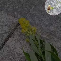 总状花序腋生,具长梗;花2-6朵聚生于花序的顶端,花梗间常有肉质密腺;花萼浅绿色,钟状,长6-10毫米,裂齿披针形;花冠黄白色而略带青紫,长约2厘米,各瓣均具瓣柄,旗瓣扁圆形,宽约2厘米,顶端微凹,基部稍有耳,翼瓣略呈三角形,龙骨瓣稍弯;子房线形,被毛。