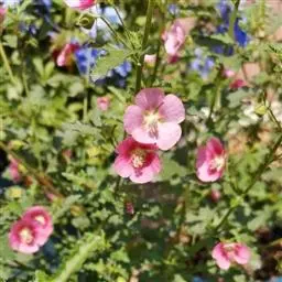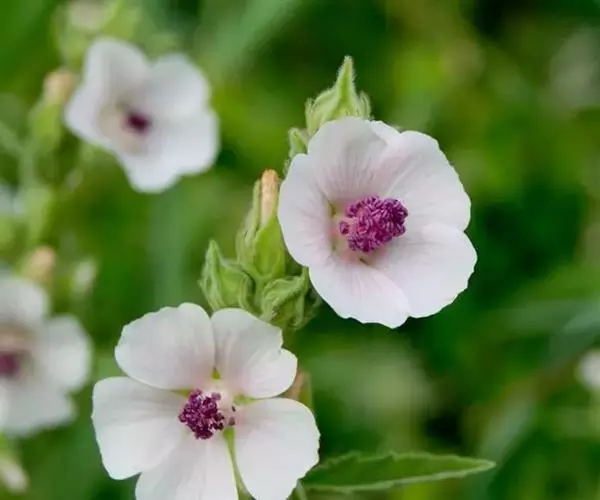 药蜀葵(学名:Althaea officinalis Linn.)是锦葵科、蜀葵属多年生直立草本植物,高可达1米,叶片卵圆形或心形,先端短尖,边缘具圆锯齿,两面密被星状绒毛;叶柄被星状绒毛;总苞的小苞片披针形,密被星状糙毛;萼杯状,裂片披针形,较苞片为长,花冠淡红色,花瓣倒卵状长圆形;果圆肾形,外包以宿存萼,分果爿多数。7月开花。