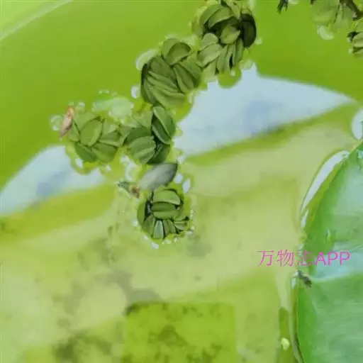 槐叶苹(学名:Salvinia natans (L.) All.)是槐叶苹科小型漂浮植物,茎细长而横走,被褐色节状毛。三叶轮生,上面二叶漂浮水面,形如槐叶,长圆形或椭圆形,长0.8-1.4厘米,宽5-8毫米,顶端钝圆,基部圆形或稍呈心形,全缘;叶柄长1毫米或近无柄。孢子果4-8个簇生于沉水叶的基部,表面疏生成束的短毛,小孢子果表面淡黄色,大孢子果表面淡棕色。 4-5月孢子体萌发,10月孢子菱成熟,11月以后植物体枯萎。